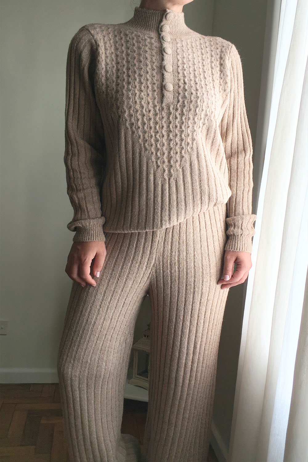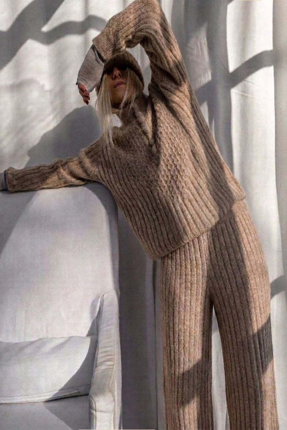 Sofisticación en cada trama. El Conjunto Nórdico redefine el concepto de lounge-wear de lujo. Diseñado para quienes buscan la calidez del punto artesanal sin sacrificar la elegancia contemporánea, este set de dos piezas destaca por su equilibrio entre estructura y confort.