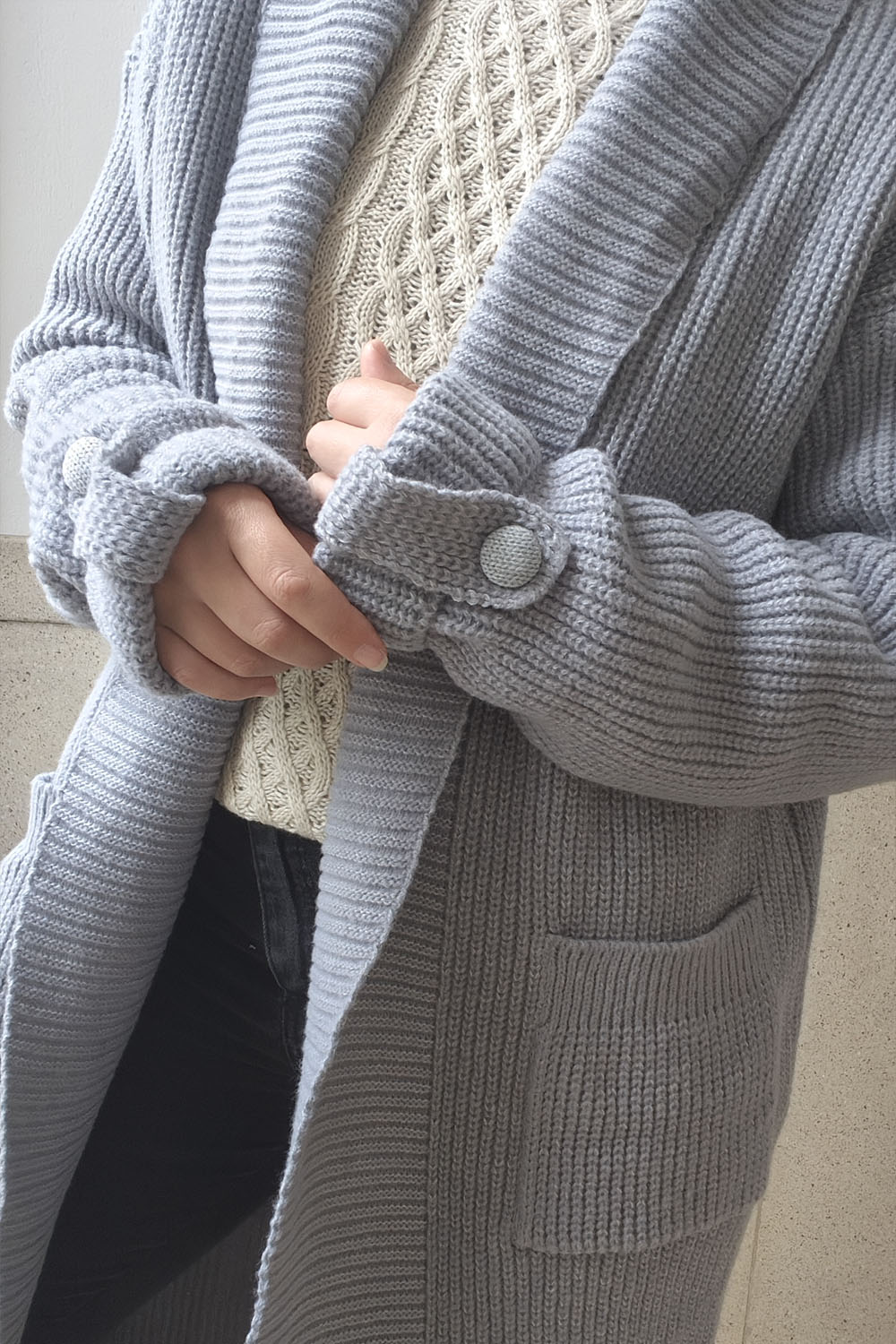 Hilado: Tejido en lana de gran grosor y suavidad, ideal para las bajas temperaturas. Una prenda que no solo abriga, sino que destila lujo silencioso.
