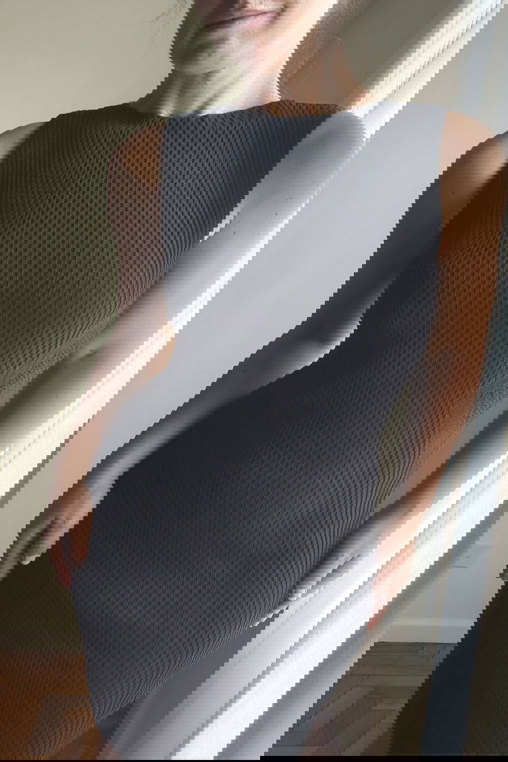 Efecto Modelador: Lo que hace único al Vestido Roma es el cambio de trama estratégico en los laterales. A la altura de la cintura, presenta un dibujo de rombos en el tejido que genera una ilusión óptica diseñada para afinar visualmente la silueta de manera sutil.