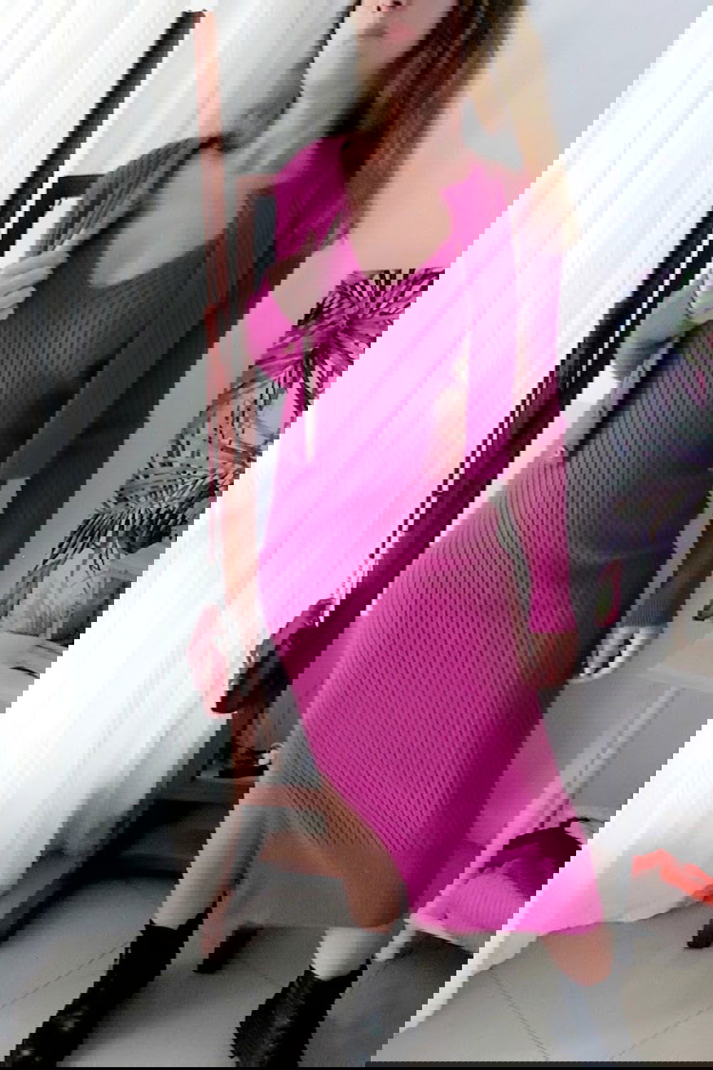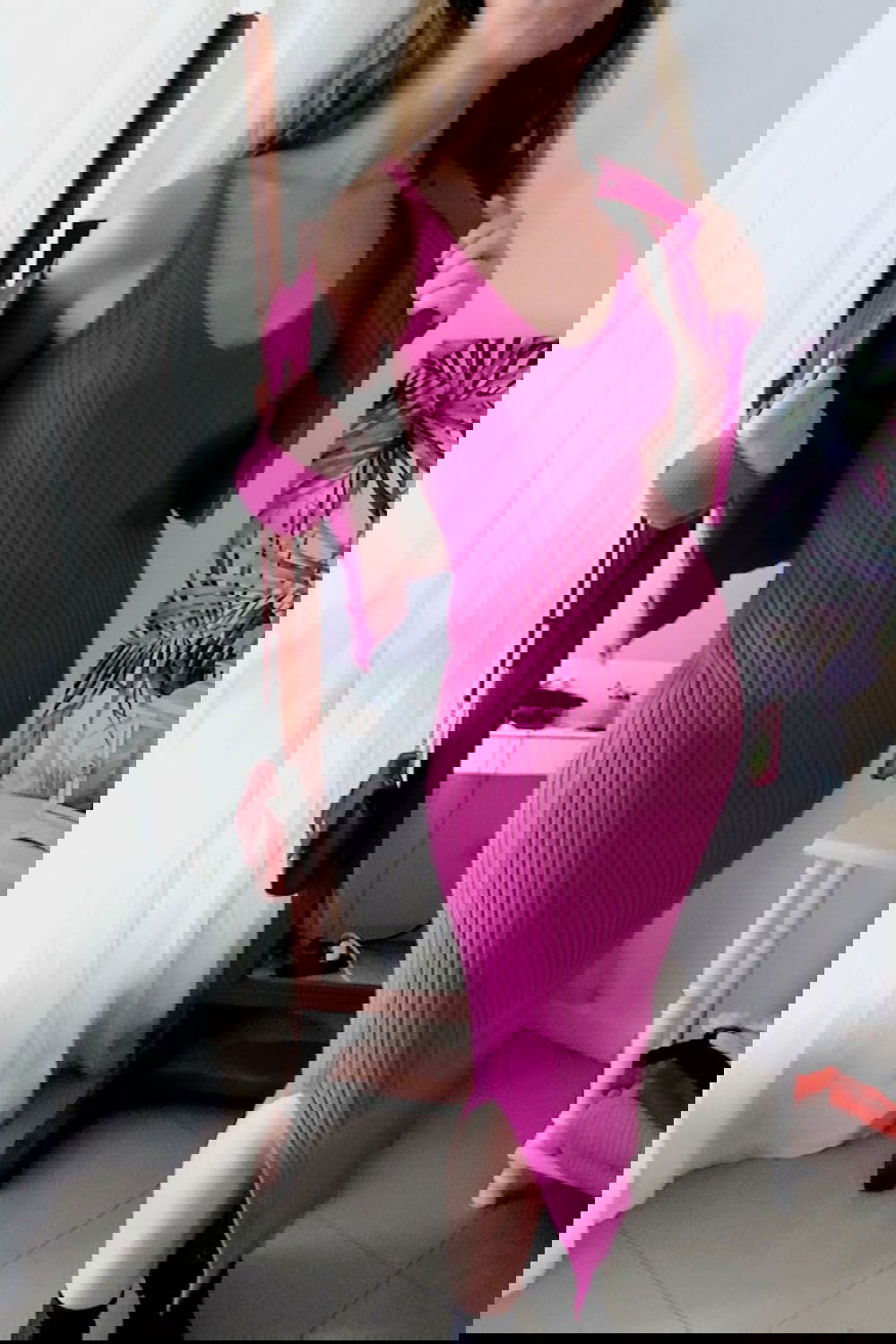 Vestido Solero: Presenta un diseño al cuerpo de largo midi con un delicado tajo lateral que aporta movimiento y feminidad.