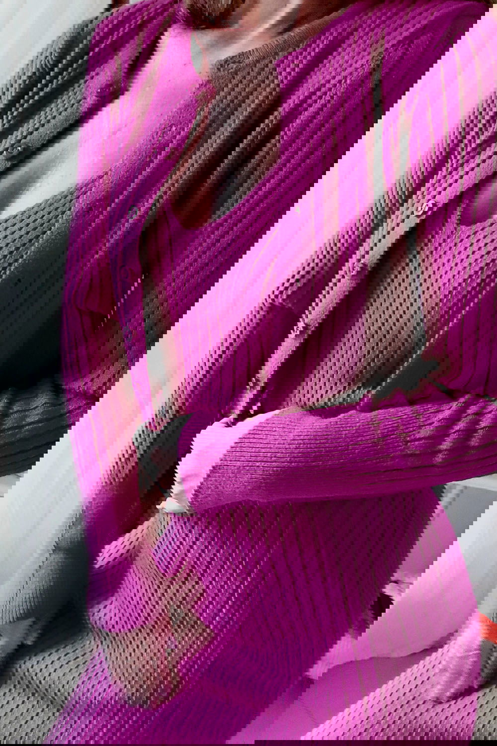Saco haciendo juego: Un cárdigan de corte entallado y botones frontales que brindar versatilidad en el uso.